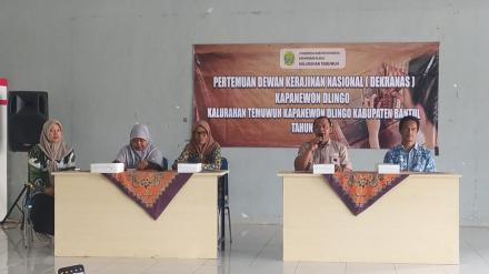 Dekranas Kapanewon Dlingo melaksanakan Kegiatan pertemuan rutin yang dilaksanakan di aula Kalurahan Temuwuh Kamis, 9 April 2026. Acara ini dihadiri oleh Ibu Kawat Kemakmuran Kapanewon Dlingo, Ketua Harian Dekranas Kapanewon Dlingo, Ibu Lurah Se Kapanewon Dlingo, Anggota Dekranas Kapanewon Dlingo Perangkat Kalurahan, dan tamu undangan lainnya.